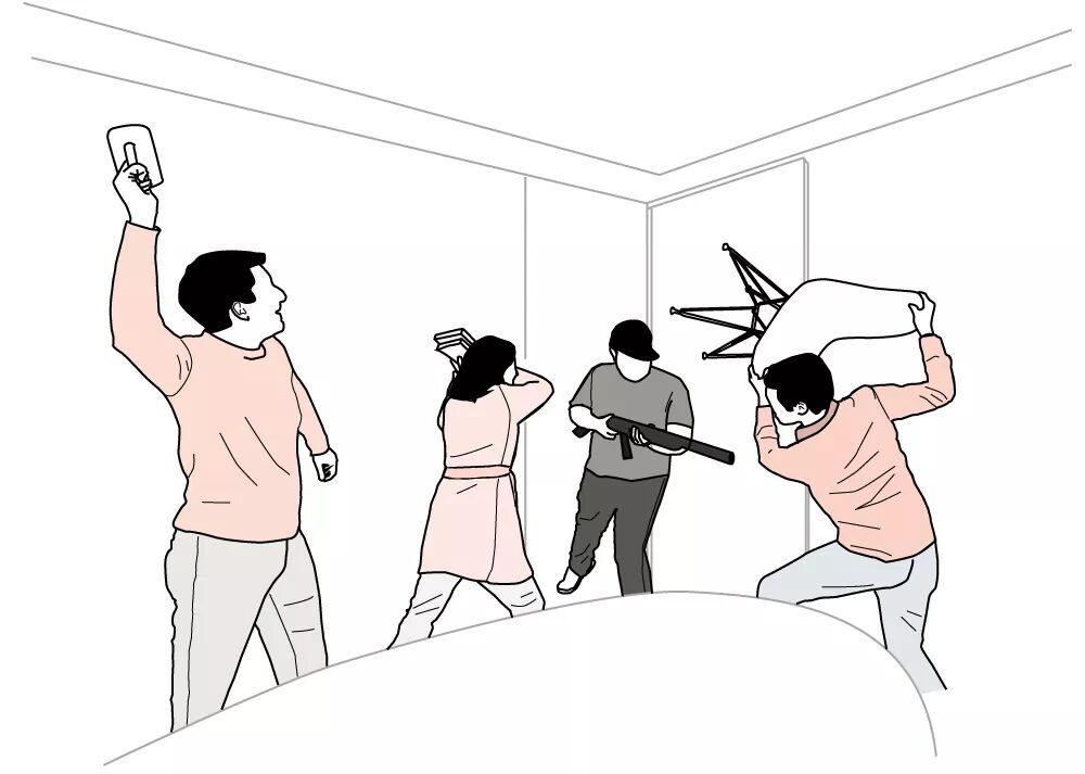 2.几个人蜂拥而上。人多的情况下,在枪手进来时,尽可能抢夺枪手的枪支,并压倒枪手。