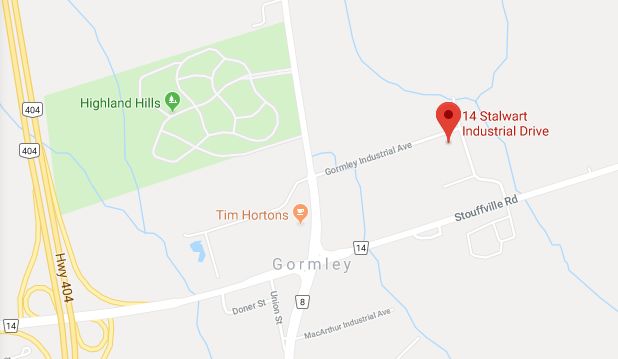 这家店位于14 Stalwart Industrial Dr.,在404公路以东,Woodbine Ave.和Stouffville Rd.东北。