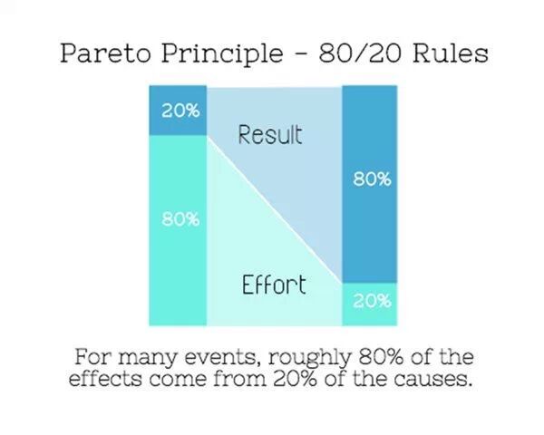 帕累托定律定律指出,你获取的80%的产出是由20%的努力带来的;而剩下的20%的产出,则需要消耗80%的努力。我们不应该仅仅专注于努力工作,更应该专注于优先完成最重要的工作。专注于那些只需20%的努力就能获得的80%的产出,暂时放弃剩下那20%的产出。我们必须停止对每一件任务都说yes的习惯,因为这些任务中,有很多需要你花费大量的精力,但是却几乎无法为你带来回报。成功人士和非常成功的人士之间的区别,就在于非常成功的人会有机会对每一件事情说“No”。— Warren Buffet.
