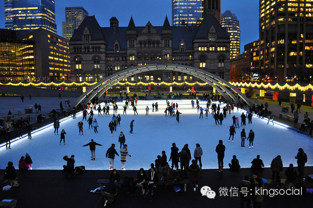 不要以为滑冰是只属于冬季的运动,如果你想不想被厚毛衣裹身,要温度还要风度着装轻便的开滑,可以尽早去Nathan Phillips Square。
