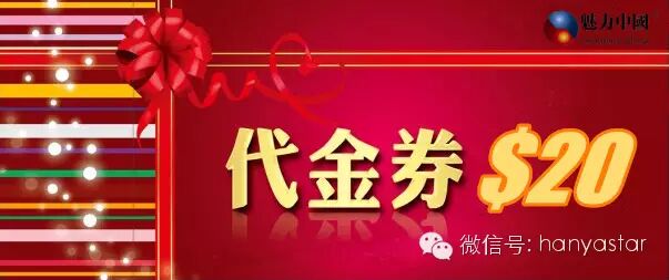 三等奖:价值$20魅力中国现金抵用券;