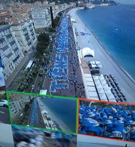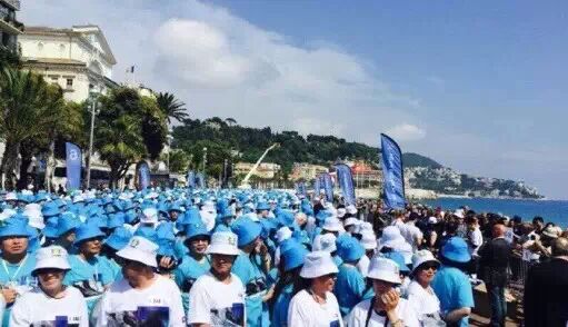 据现场的人在微博上称,天狮集团的员工光喊口号就喊了两个小时,占满了整个蔚蓝海岸的海滩,法国方面还出动了持枪的武警维持秩序