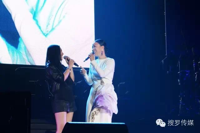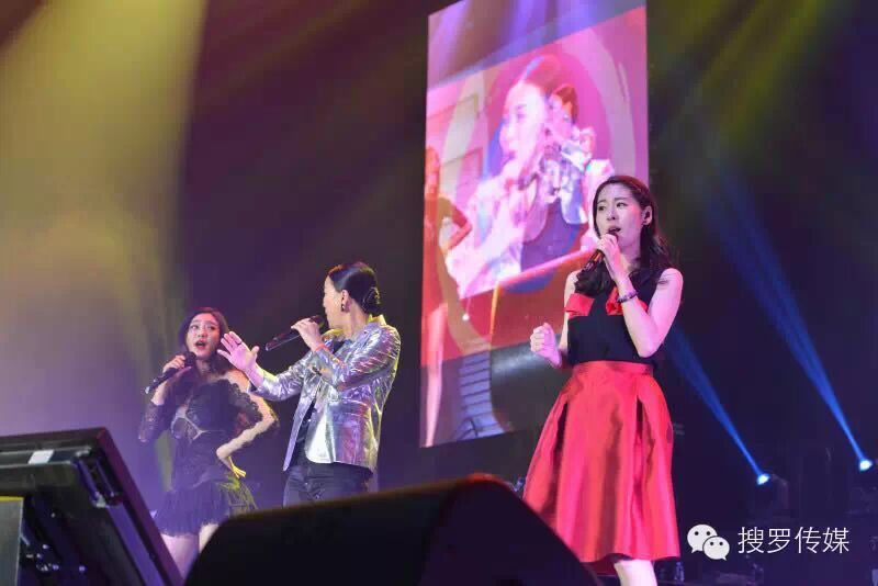今晚同台献唱的还有两位中国好声音学员陈冰与张碧晨,现场粉丝也是一大片,以及她乐团中的妞妞,那英说:一直为在好声音节目中没为妞妞转身而懊悔不已。