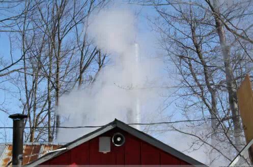 熬糖的作坊。 把枫树汁,加热熬去水分便成了枫糖浆。