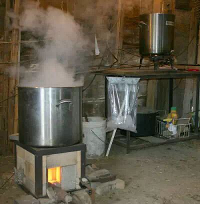 收集好了树液就可以开始熬枫糖。
