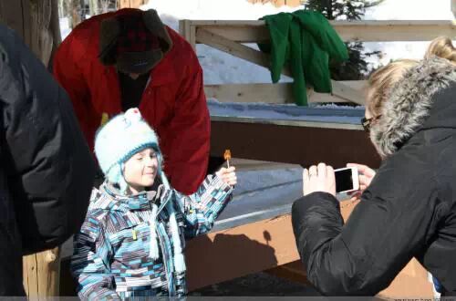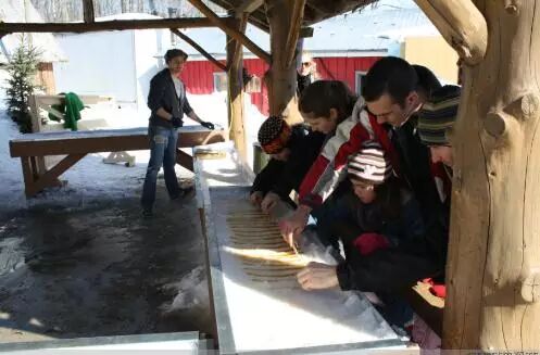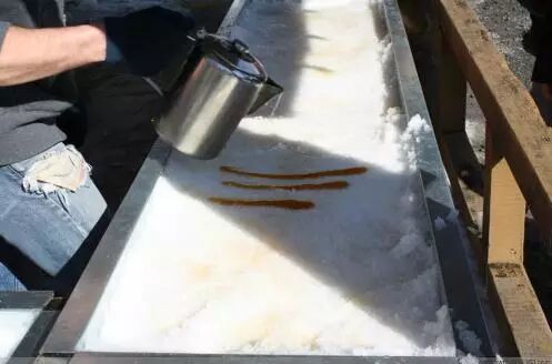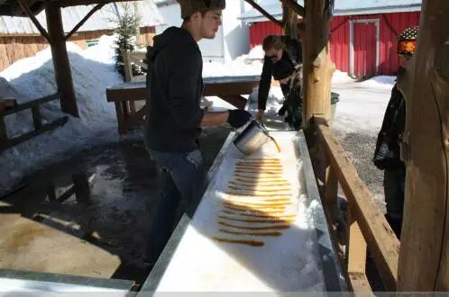 加拿大的小盆友通常会拿根小木棍,把淋在雪面上的枫糖浆卷起来,便是棒棒们吃的枫糖棒棒糖,吃起来有碳烧的味道。
