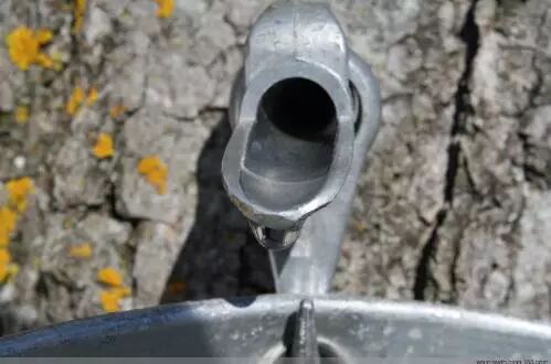 图片中这个漂亮的小东西叫做插管,先在枫树树干上钻一个大小合适的洞,再将插管放进洞中。